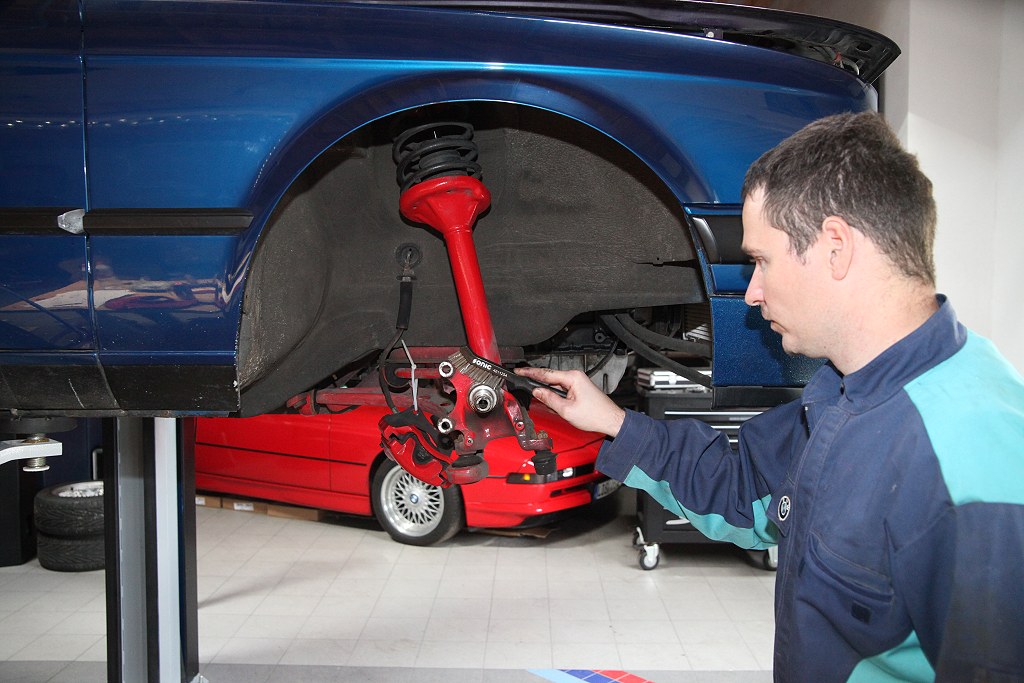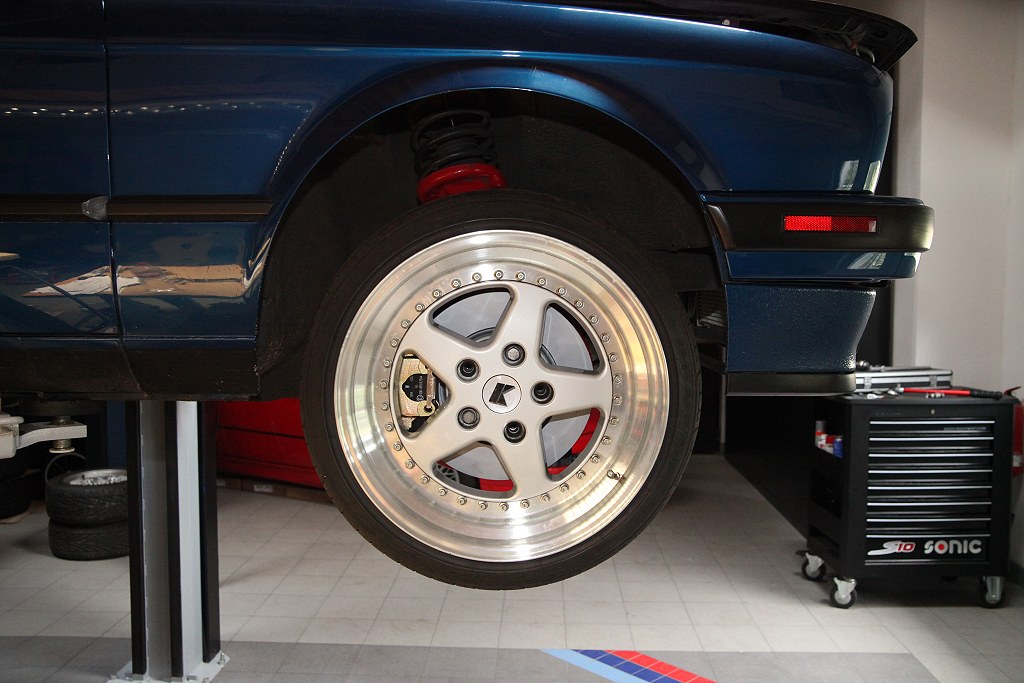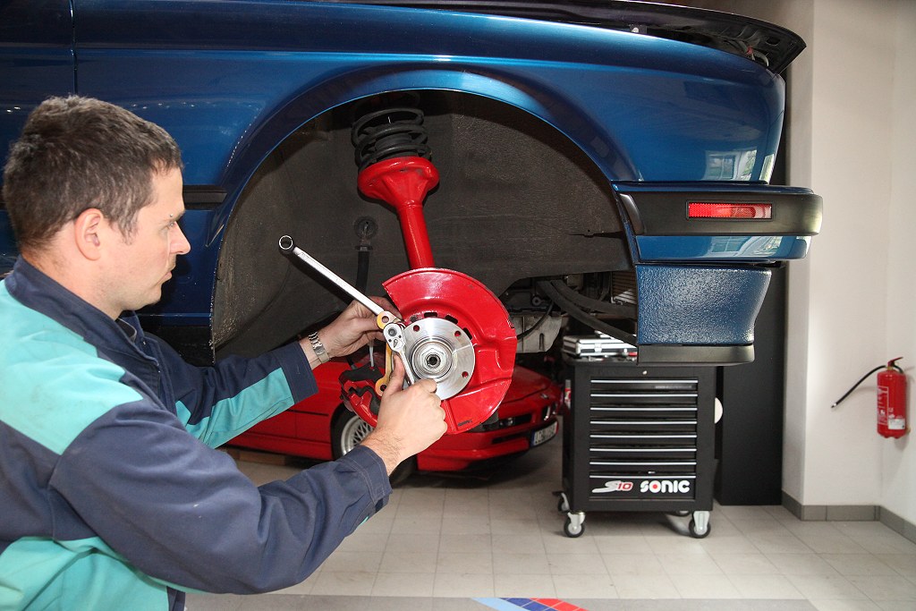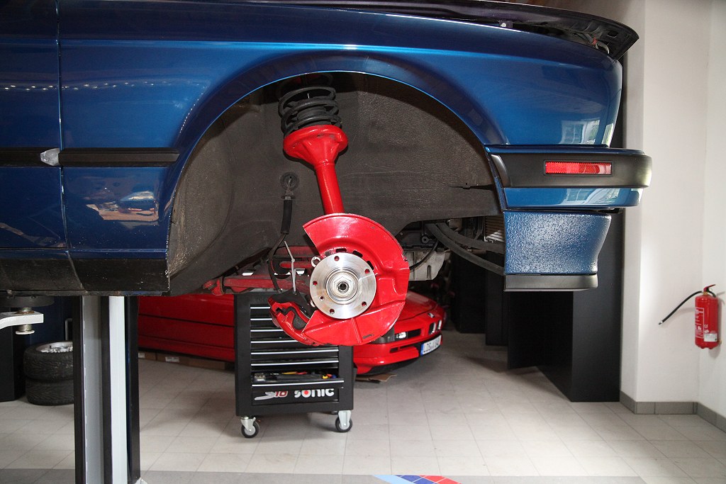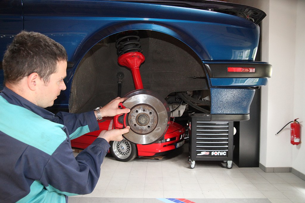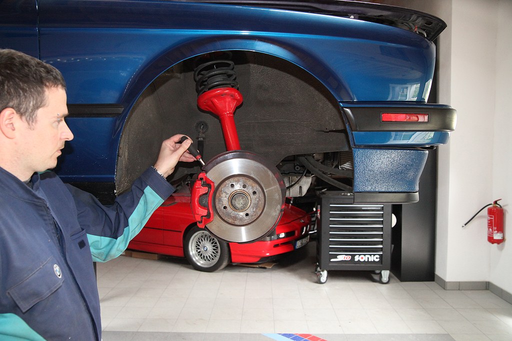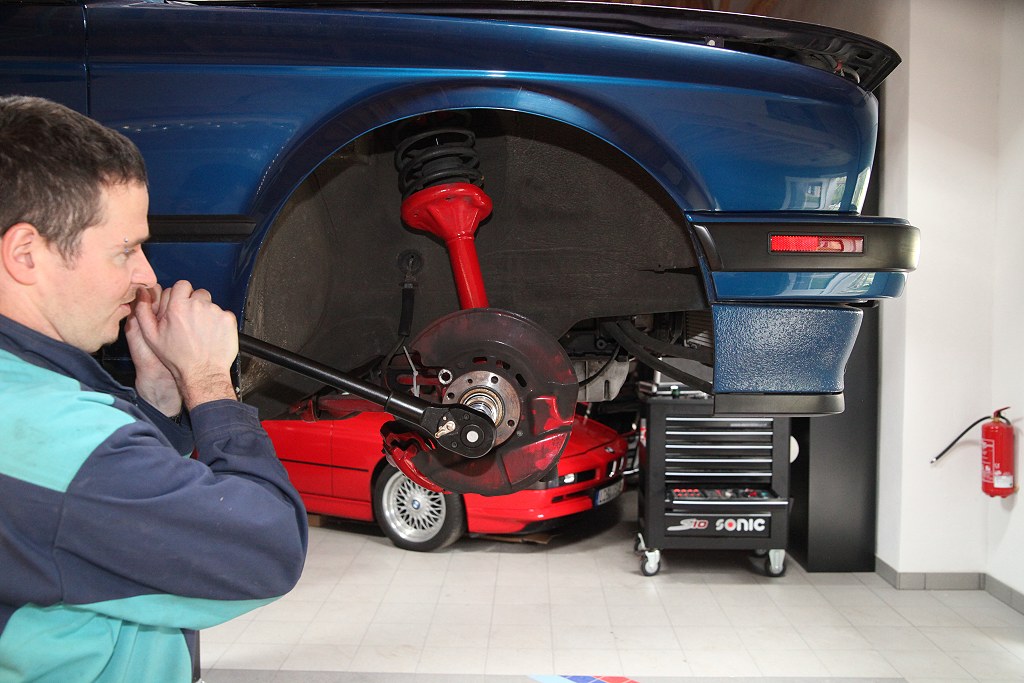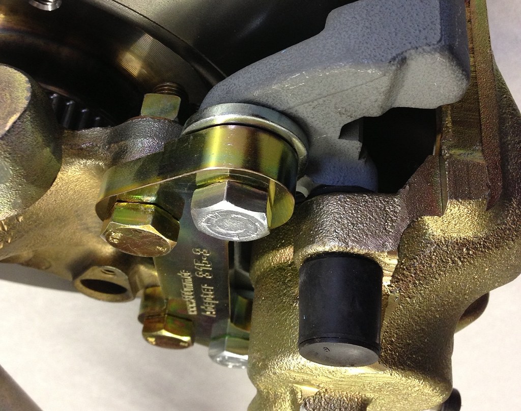 E30 Bremssattel wird zunächst an seinen Befestigungspunkten mit