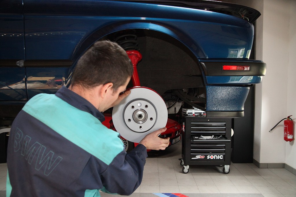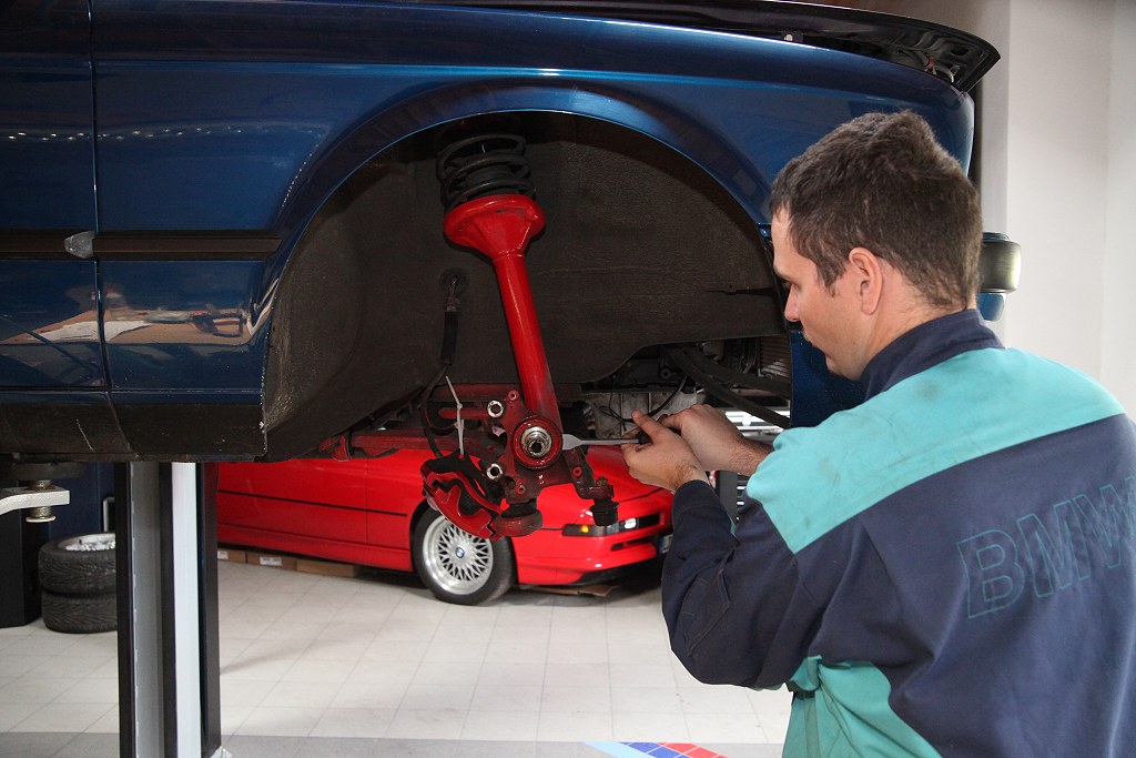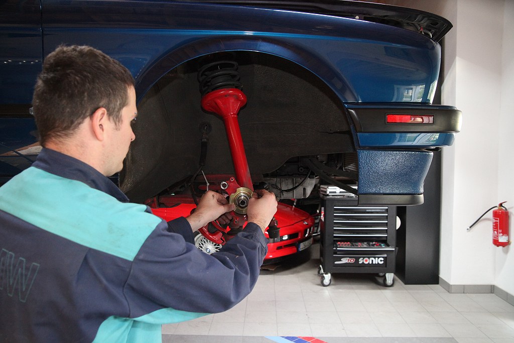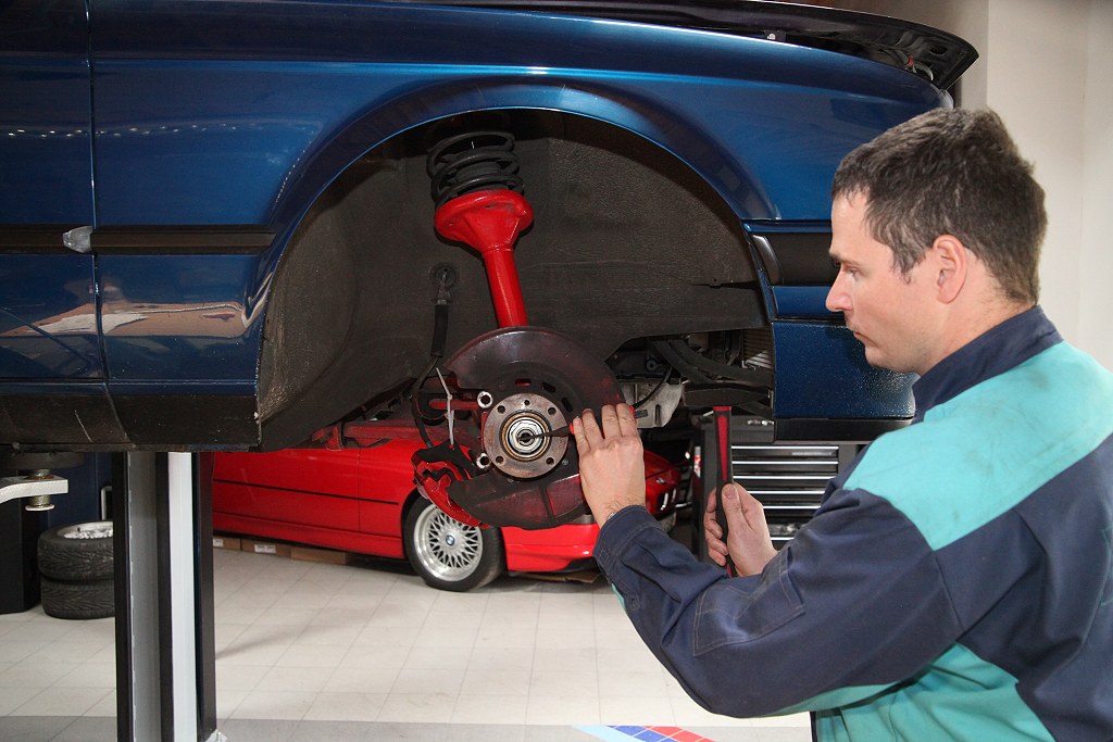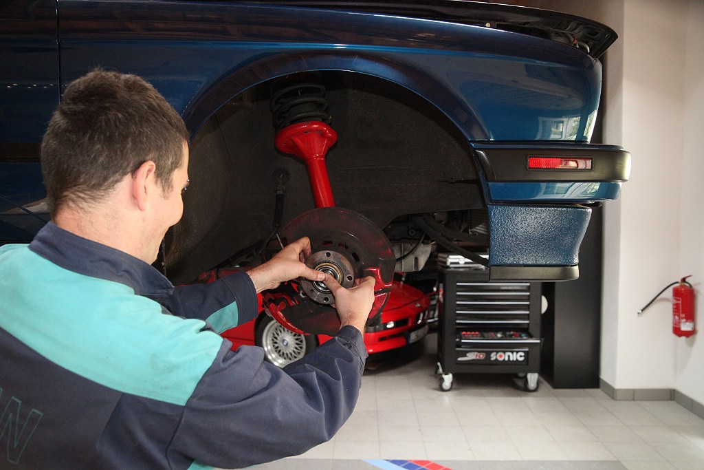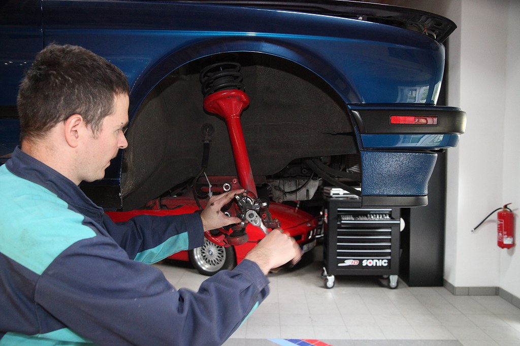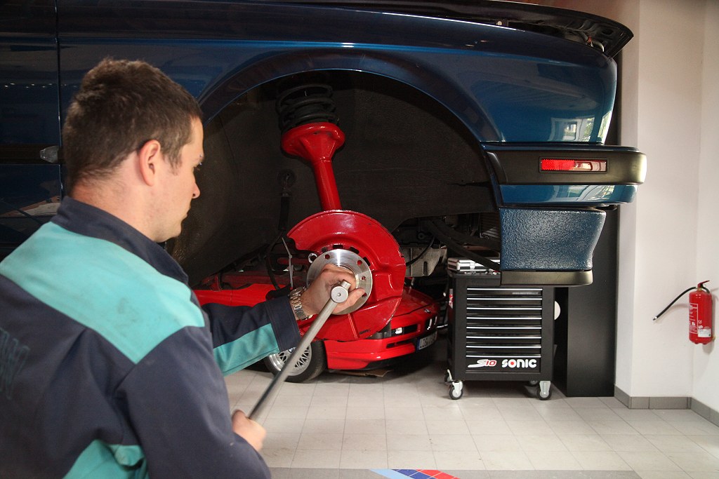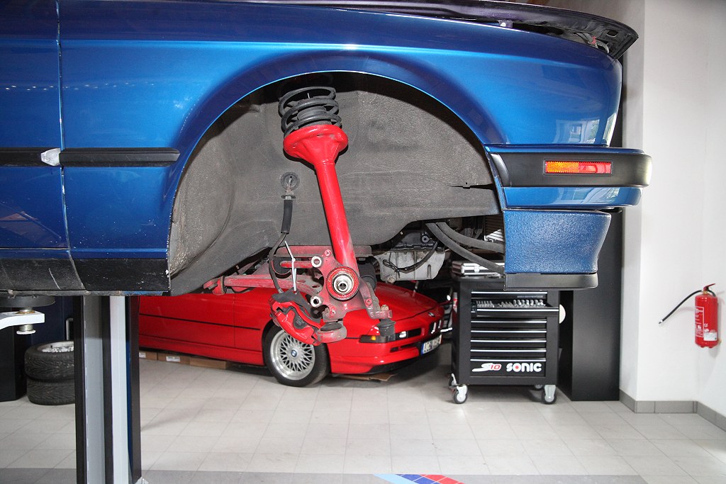 E30 Bremssattel wird zunächst an seinen Befestigungspunkten mit