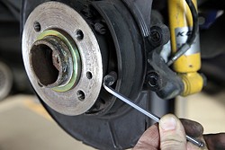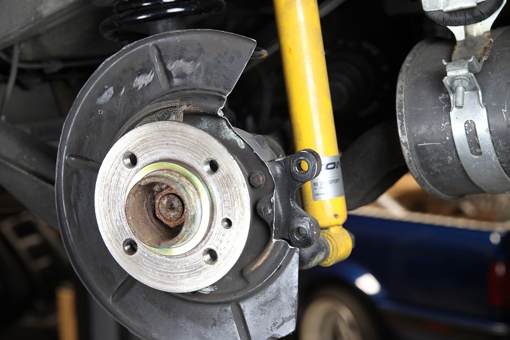 Bremsscheibe (bei 4x100 samt Zentrierring) wird nun montiert und mit