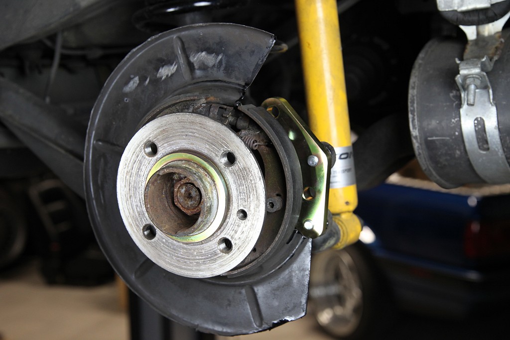 hintere Handbremsbacke muss demontiert werden, weil das Ankerblech