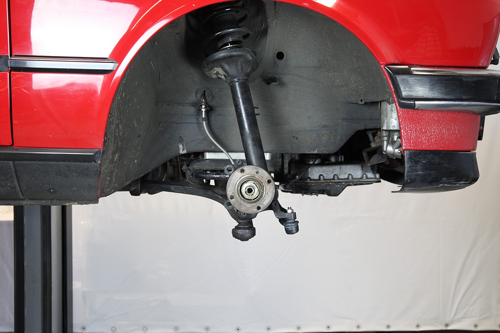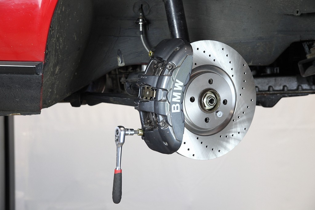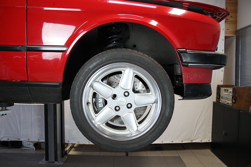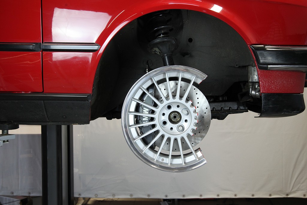 E30 wird die originale Bremsanlage komplett entfernt. Im Foto fehlt das